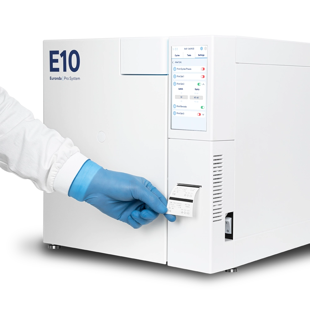 اتوکلاو Euronda E10 با استفاده از سیستم ردیابی دیجیتال و همچنین کاغذی، مدیریت و بایگانی نتایج فرایند استریلیزاسیون را ساده کرده است.